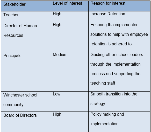 Management at Winston’s College should take into account that workload seems to be the most pressing issue when it comes to employee retention. This can be initiated by having more flexible schedules so that all employees can take “duvet days” on particular days throughout the year. Additionally, teachers should be allowed to recover from illness without being obliged to do cover work. The school must shift away from a culture in which teachers take long-term sick leave in response to a heavy workload and stress. The organization can look into getting “well-being leads” who actively look for ways to lighten the workload or switch employees during particularly challenging times of the academic year.